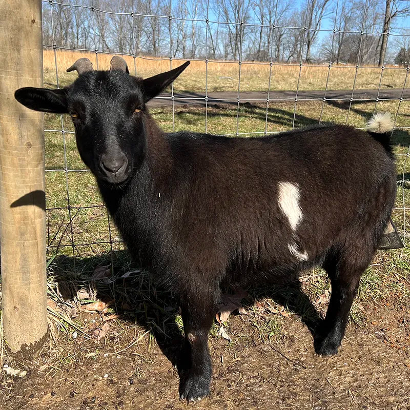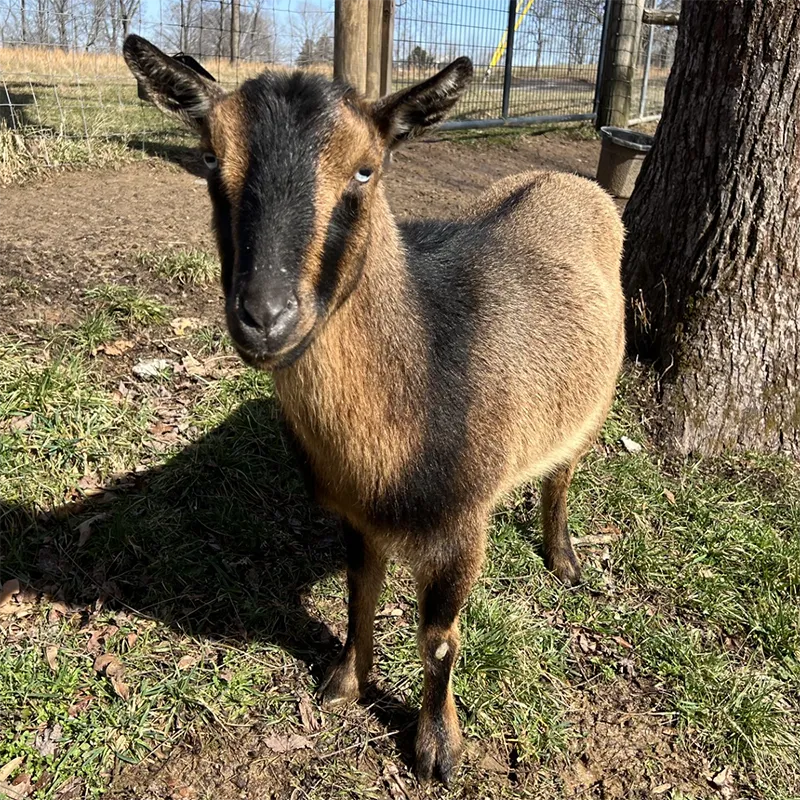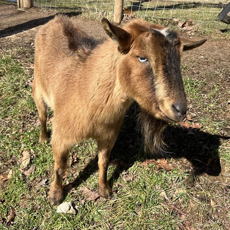 Drake is the most dominant, stubborn, and vocal of our goats.ย He will always let you know if he wants something or is unhappy about a situation.ย When we built the fencing for the goat enclosure, Drake immediately took to leaping over it, letting us know that he's also the most acrobatic!ย Since Drake is the mostย dominant, he's also the leader of theย goats.ย It's so cute to see him call the shots and watch how the other goats totallyย trust their big brother.