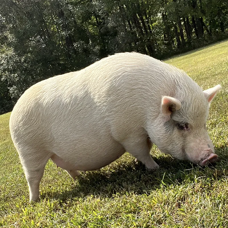 Lulu was one of our founding farm animals.ย She was here before we were and was a pet pig of the previous owners of the property.ย When asked if we wanted to keep her, we didn't have to think about it for even one second!ย Lulu had a lot of personality and was best described as a diva. ย She had strong feelings, especially at meal time - she was always ready to eat!ย Lulu helped our other pig, Fonzarelli, feel so welcomed into his new home at The Radical Ranch, and we are forever grateful for the companionship she provided him.ย Thank you, Lulu... you will not be forgotten!